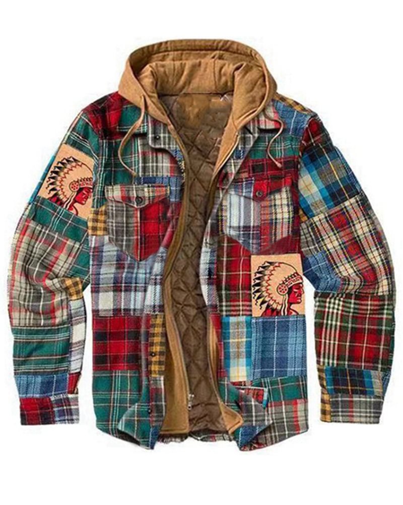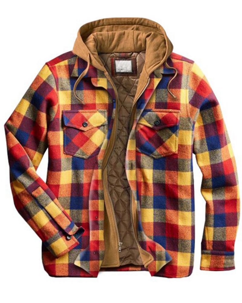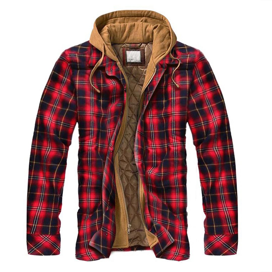 - Men's casual thick plaid hooded jacket