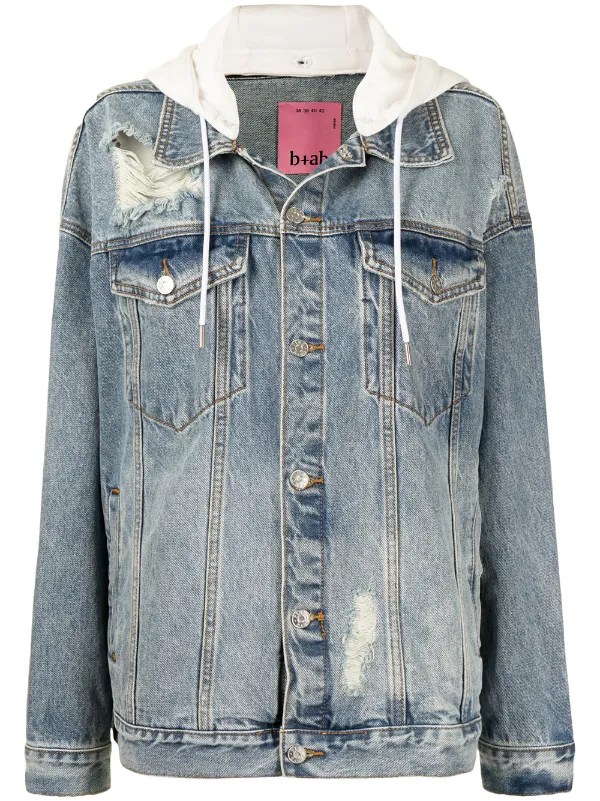 - Distressed hooded denim jacket clearance