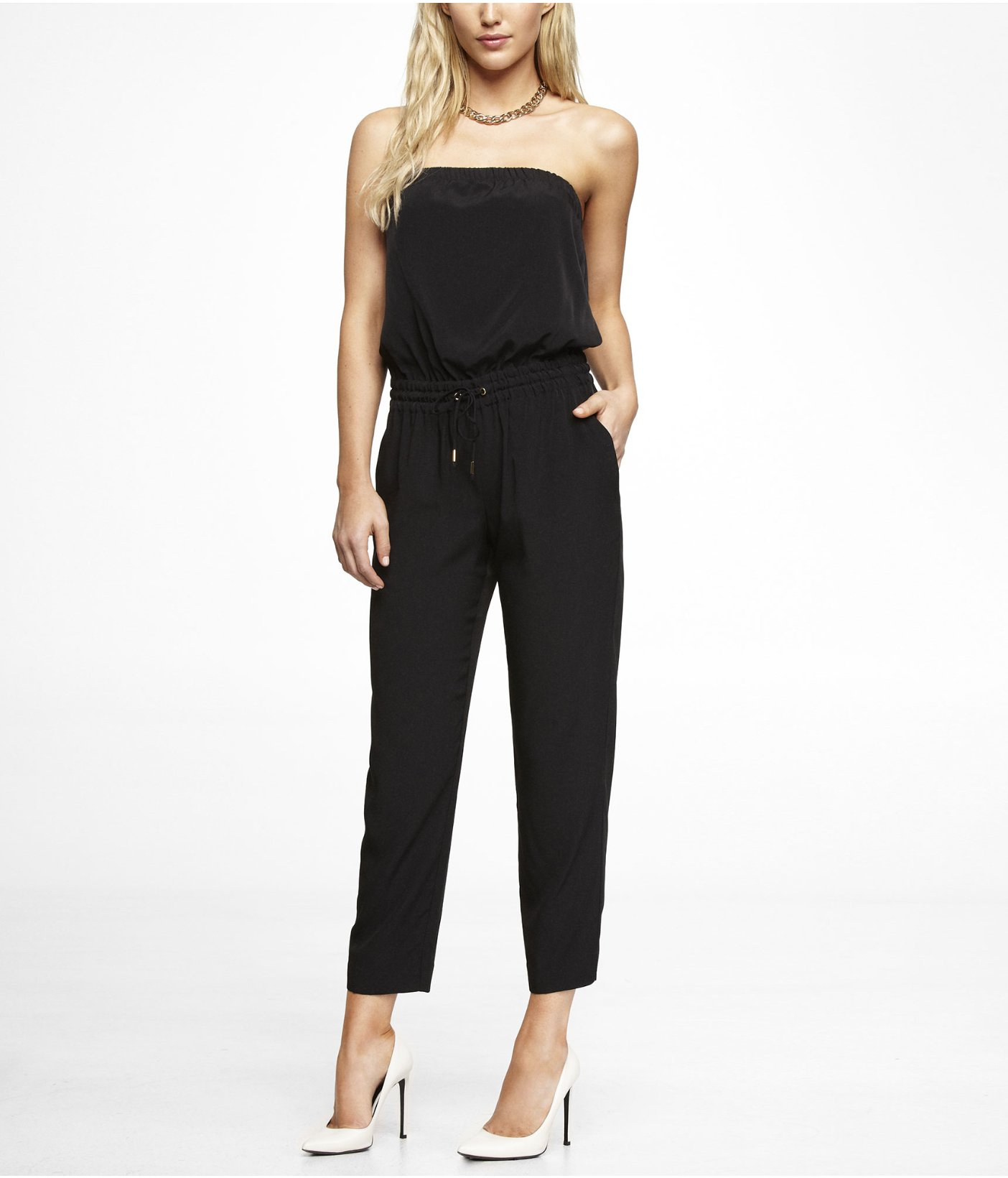 - Express black strapless jumpsuit sale online