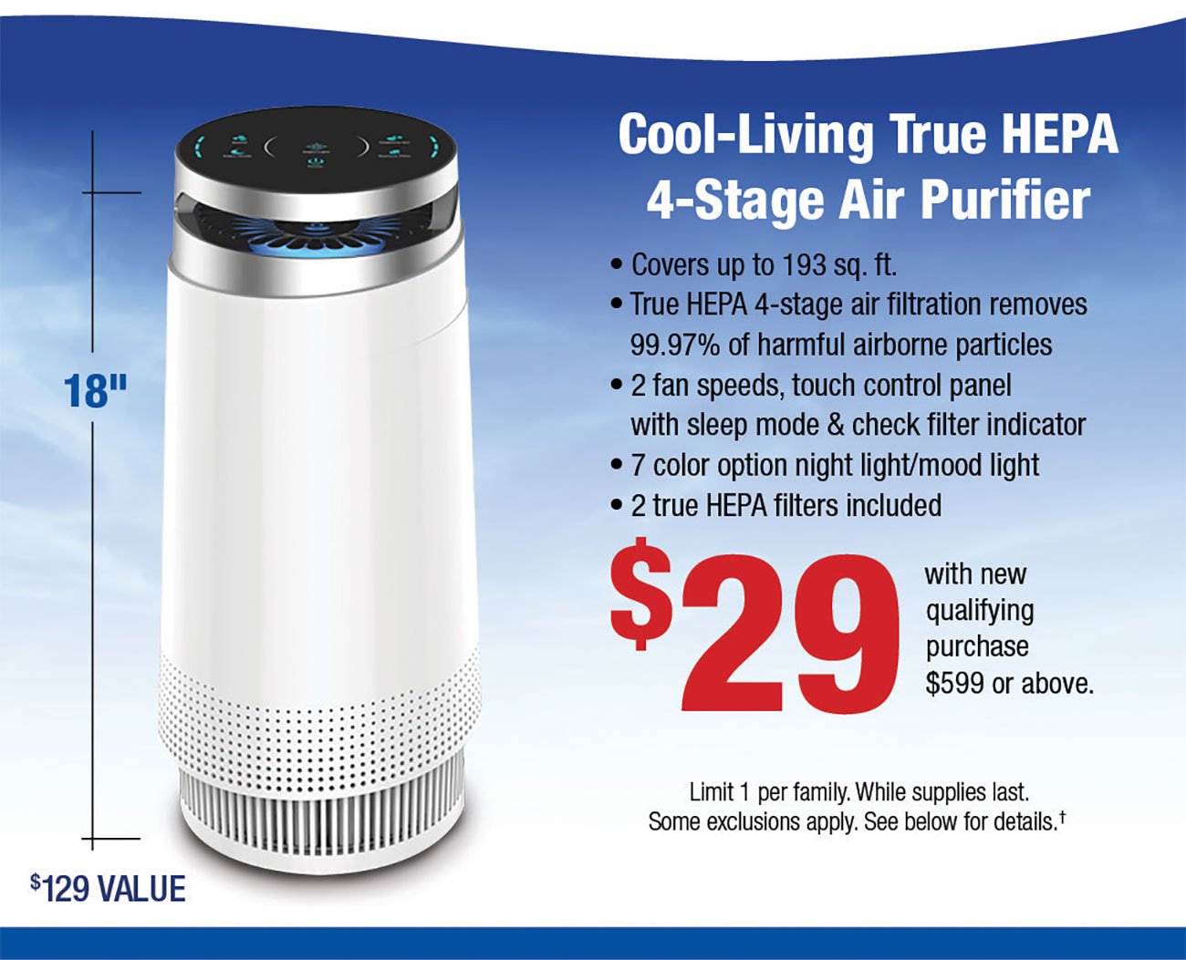 - Cool living air purifier 193 sq ft sale