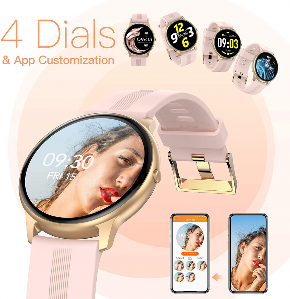Agptek smart watch app Clearance, Smart Watch for Women, AGPTEK 1.69″(43mm) Smartwatch for Android and iOS Phones IP68 Waterproof Fitness Tracker Watch Heart Rate Monitor Pedometer Sleep Monitor for Women Pink | AGPTEK Clearance
