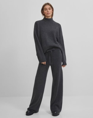 Strickset hose und pullover Clearance, Set aus Pullover und ausgestellter Hose aus schwarzer Maschenware - Cinelle Paris, trendige Damenmode Clearance