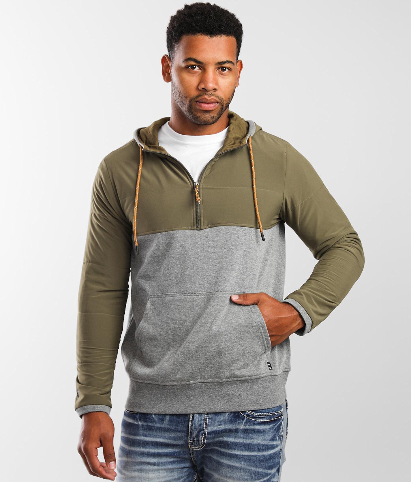 Quarter zip hooded sweatshirt Clearance, Veece Avery Quarter Zip Hoodie - Green/Grey Small, Men's Clearance