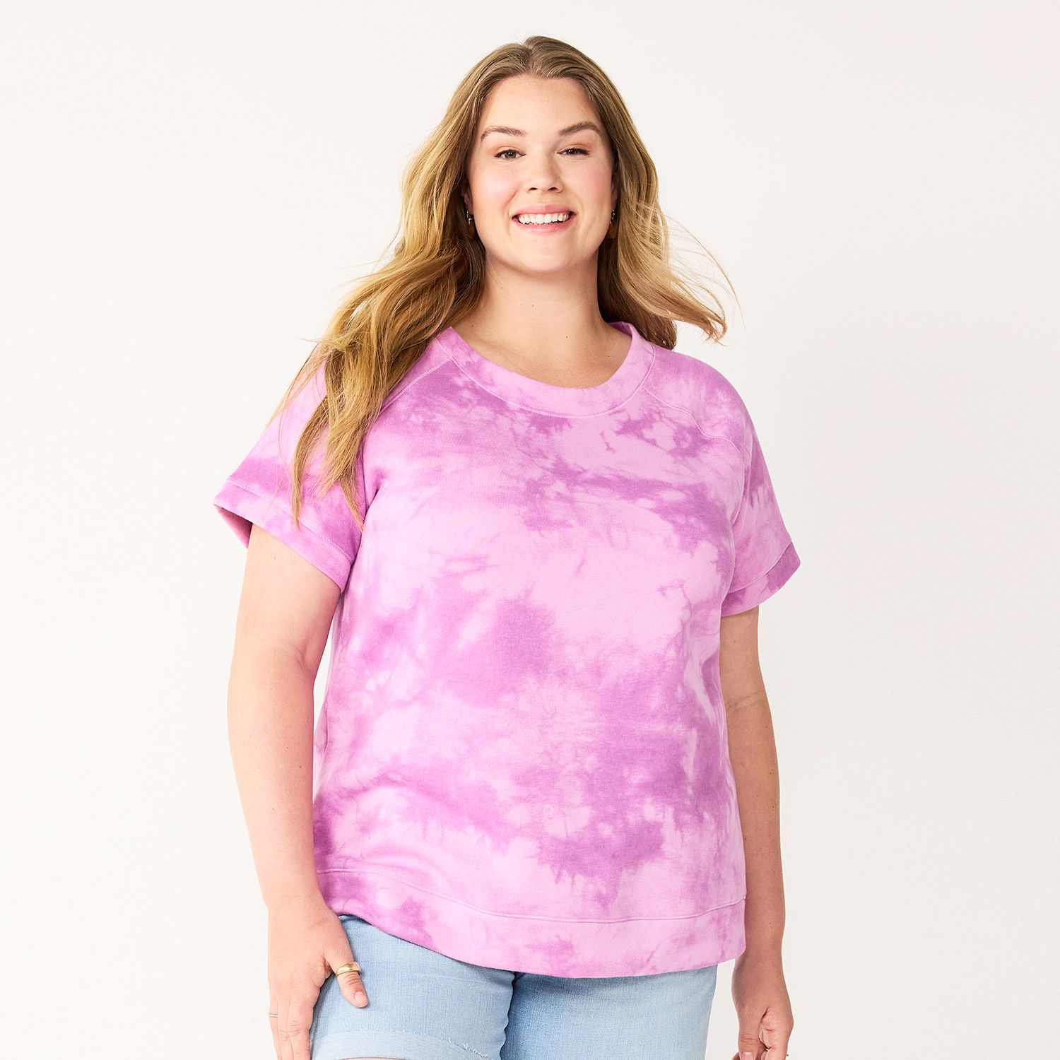 Kohls sweatshirts womens plus Clearance, Plus Size Sonoma Goods for Life Short-Sleeve Fleece Sweatshirt, Women's, Size: 4XL, LT Purple Clearance