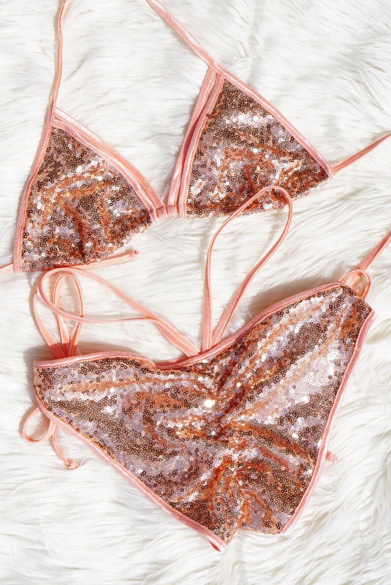 Rose gold swimwear Clearance, Sequin rose gold sexy bling bikini Clearance
