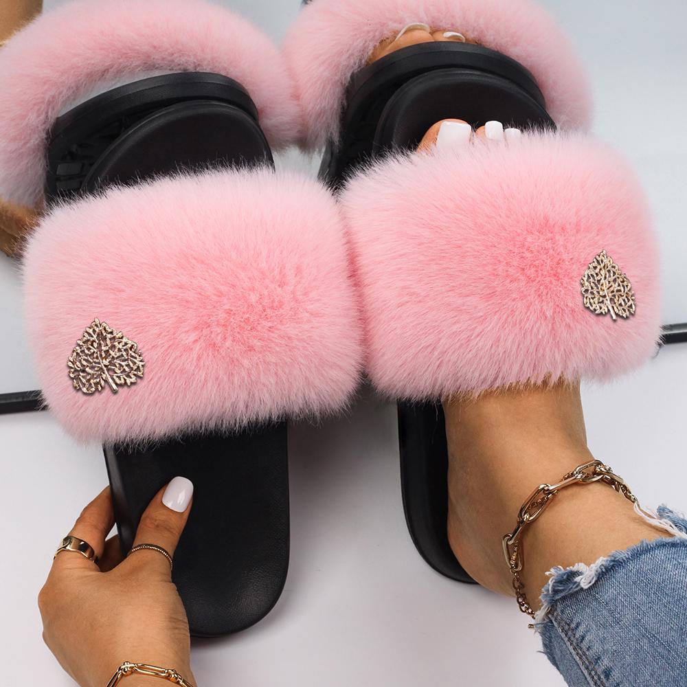 Faux fox fur slides Clearance, Buy Fluffy Flip Flops Faux Fox Fur Clearance