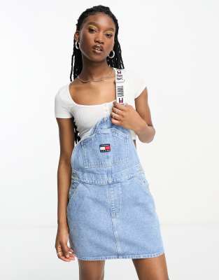 Latzkleid blau Clearance, Tommy Jeans – Jeans-Latzkleid in Blau mit Logodetail | ASOS Clearance