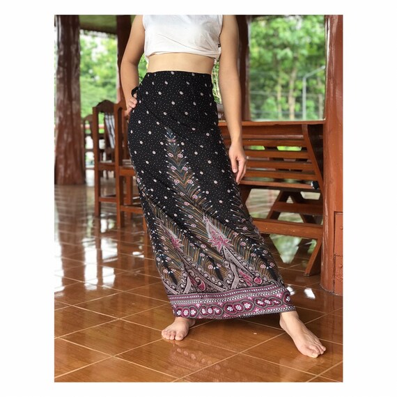 Long flowy hippie skirts Clearance, Brown peacock Thai Woman skirt Flowy Clearance