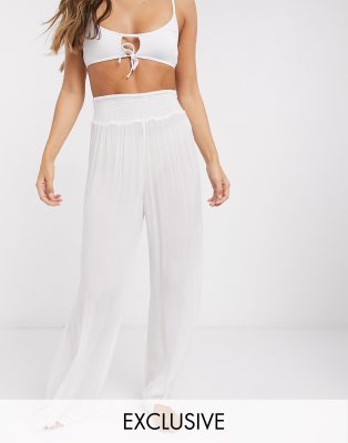 White high waisted beach pants Clearance, Fashion Union Exclusive wide leg high Clearance