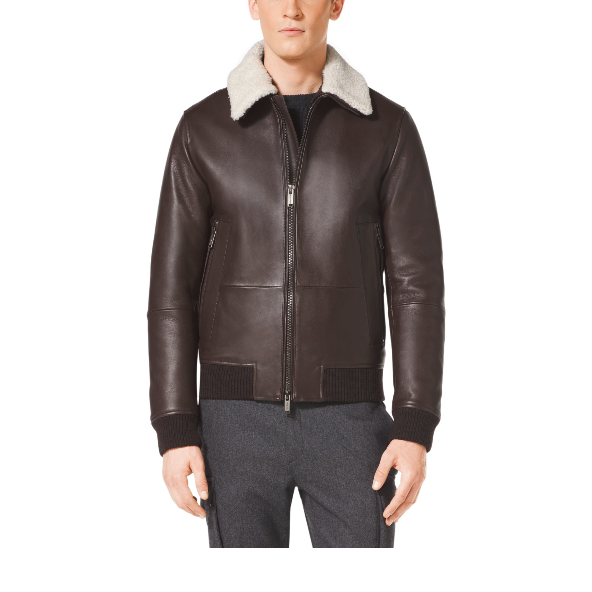 - Cheap Leather aviator jacket with shearling collar