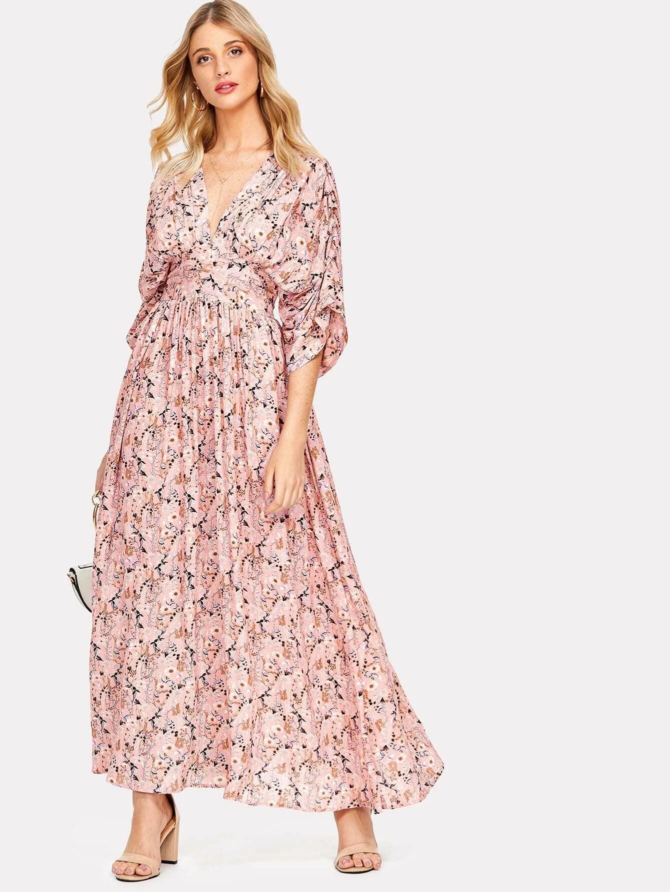 Shein kimono dress Clearance, Ditsy Floral Side Slit Surplice Kimono Clearance