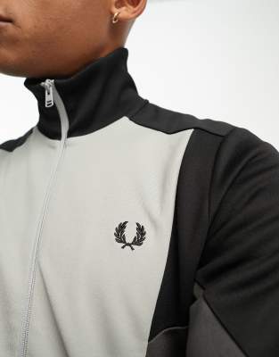 Fred perry trainingsjacke grau Clearance, Trainingsjacke mit kontrastierendem Sportband - Silberblau / Warmes Grau | Trainingsjacken für Herren | Track Tops \u0026 Sportjacken | Fred Perry DE Clearance