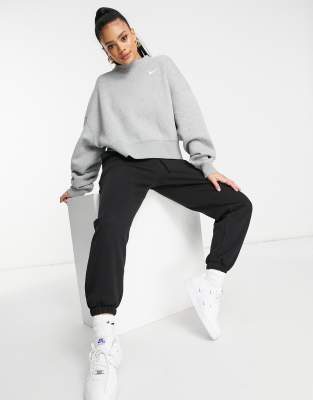 - Nike mini swoosh oversized cropped sweatshirt in light gray sale online
