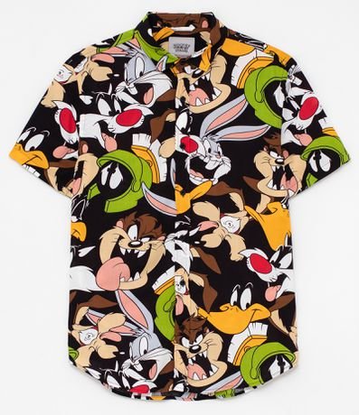 Camisa viscose looney tunes Clearance, Camisa Manga Curta Estampa Looney Tunes em Viscose Clearance