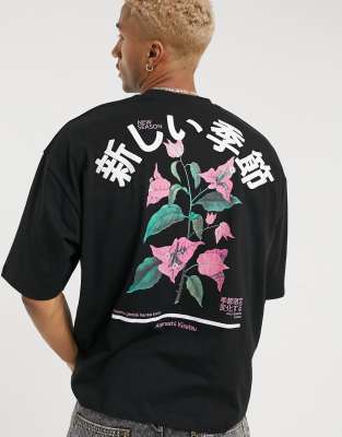 Oversized t shirt backprint Clearance, Oversized Floral Photo Back Print T Clearance