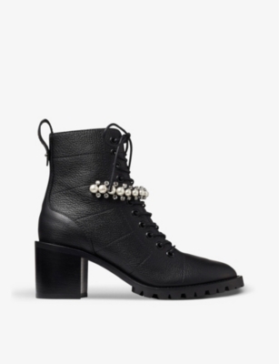 Jimmy choo cruz 65 Clearance, Grained Leather Lace-Up Combat Boots Clearance