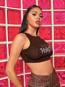 Shein honey shirt Clearance, SHEIN Honey Rhinestone Round Neck Tee Clearance