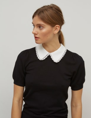 - Black shirt with white peter pan collar shop