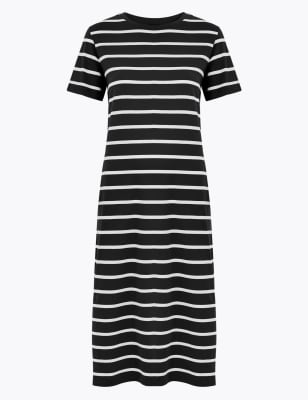 M and s shirt dresses Clearance, Pure Cotton Striped Midi T-Shirt Dress Clearance