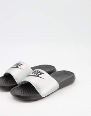 Nike silver sliders Clearance, Nike Victori One Sliders in Black/Silver Clearance