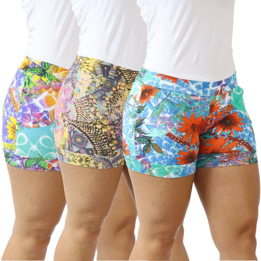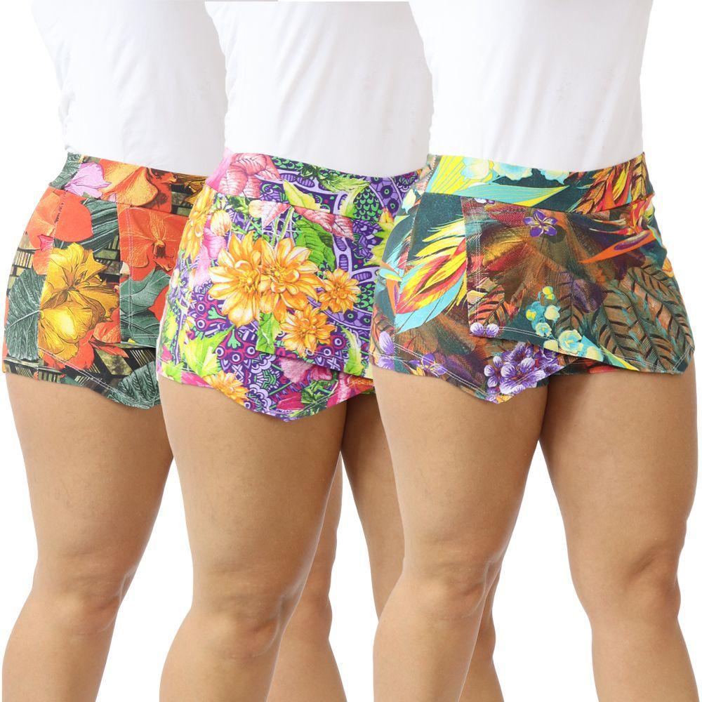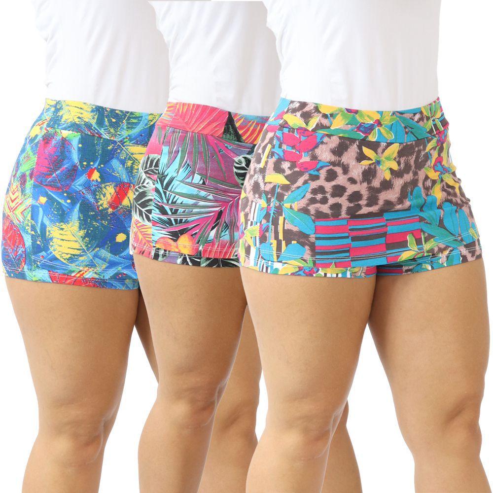 Shorts de cotton para academia Clearance, Kit 3 Shorts Saia Feminino Fitness Estampado Cotton Academia - Zafina - Short Saia Feminino - Magazine Luiza Clearance