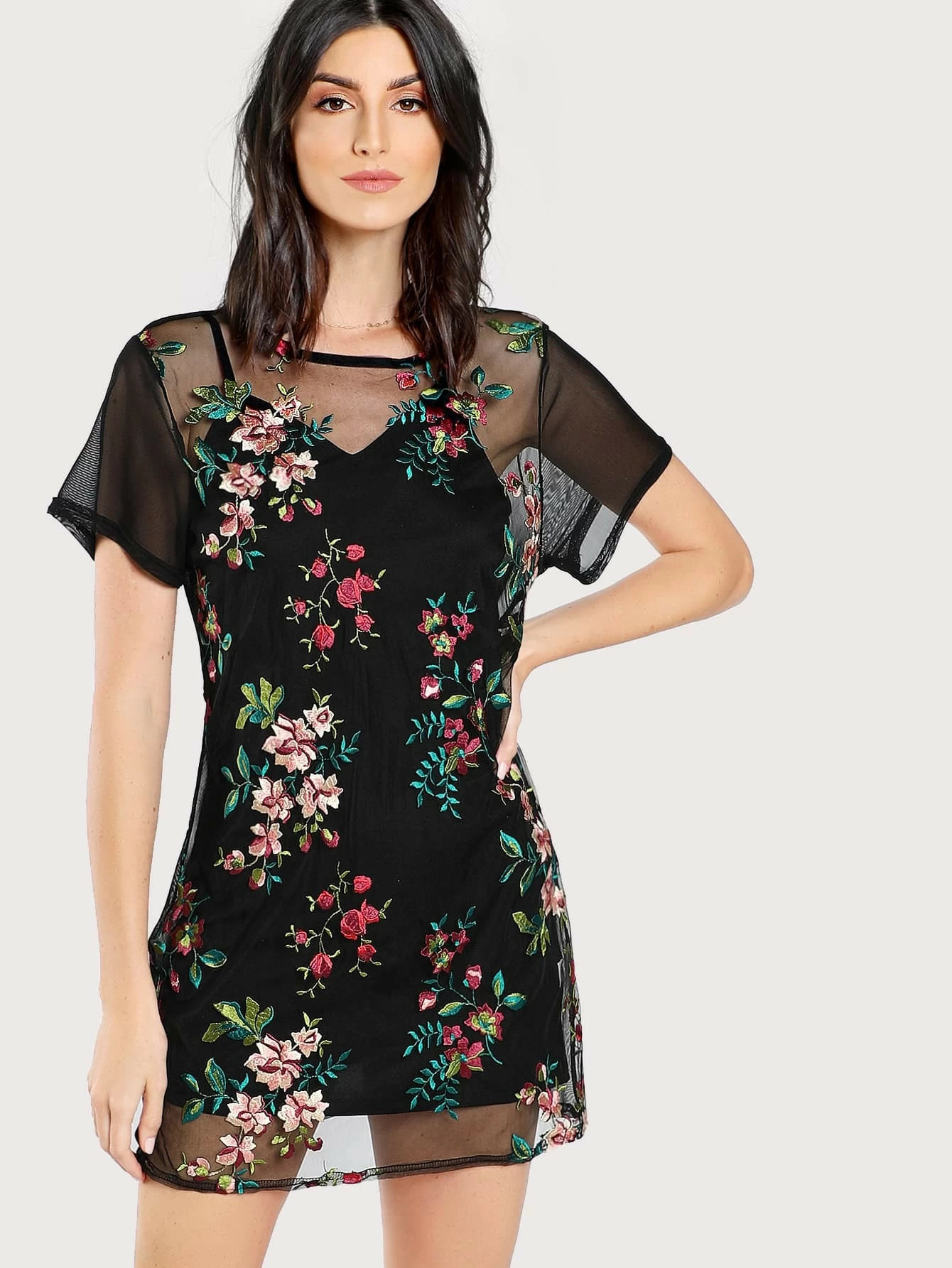 Robe transparente fleur Clearance, Robe transparent brodé fleurs | Mode en ligne | SHEIN FRANCE Clearance