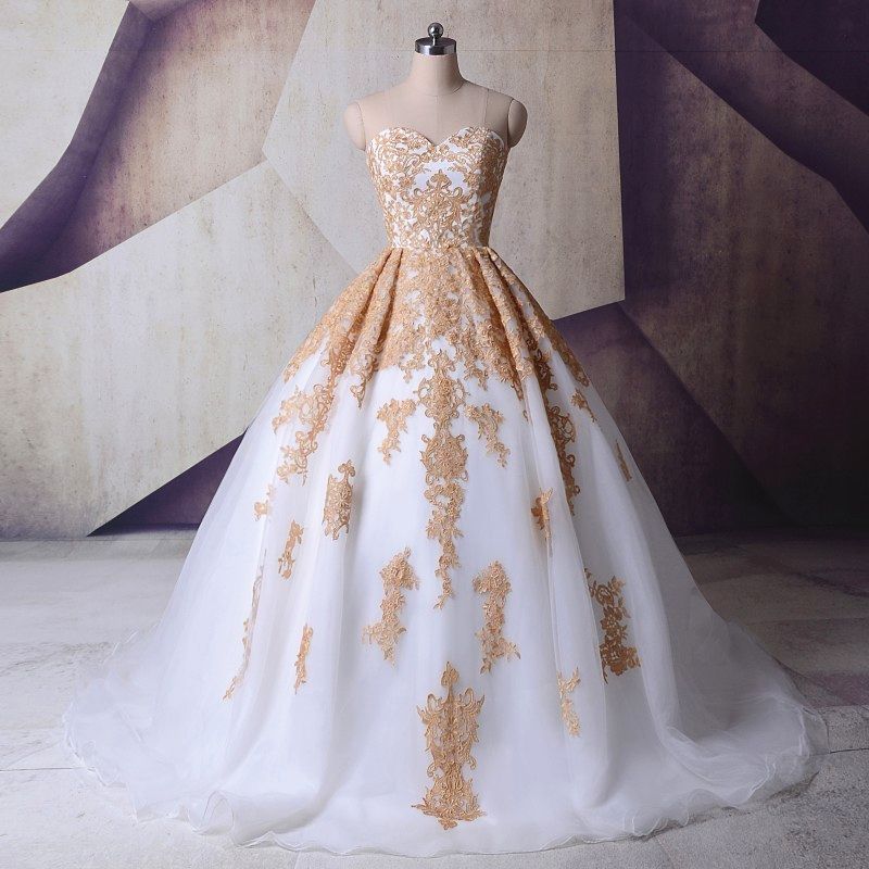 Vestido de niña blanco con dorado Clearance, Compre Sirena Blanco Y Dorado Vestido De Novia Barato Fotos Reales Sweetheart Capilla De Tren Aplique Encaje Vestido De Novia Para Mujer Niñas A 118,07 € Del Elegant_bridedresses | Es.Dhgate.Com Clearance