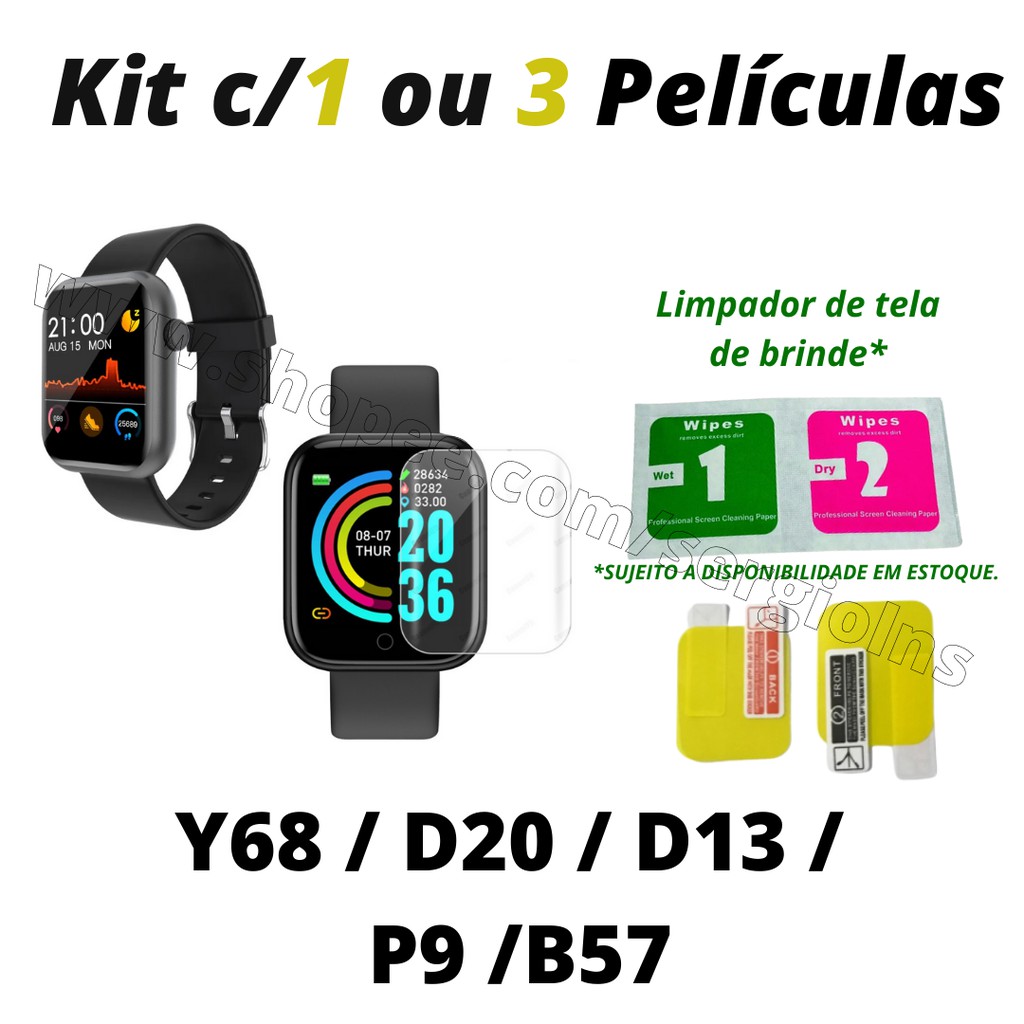 Pelicula relogio b57 Clearance, Kit c/ 3 Películas para Smartwatch Relógio Y68 / P9 / B57 / D13 / D20 - Tutorial na descrição | Shopee Brasil Clearance