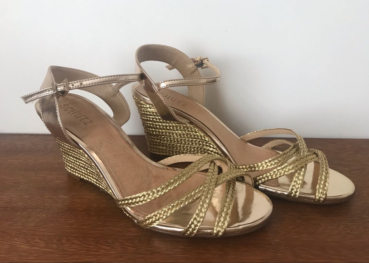 - Sandalia anabela dourada shop