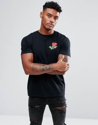 Camiseta negra con rosa Clearance, Camiseta negra con bordado de rosa de boohooMAN | ASOS Clearance