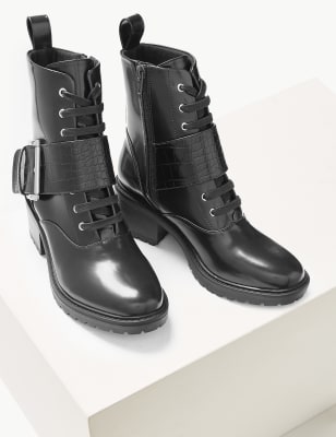 Biker boots marks and spencer Clearance, Block Heel Lace-Up Biker Boots | M\u0026S Clearance