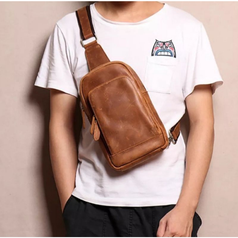 Sling bag kulit Clearance, Jual Tas Sling bag kulit asli premium Clearance