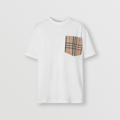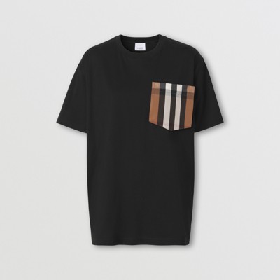 T shirt burberry femme Clearance, Burberry Carrick Cotton T-Shirt with Check Sleeves Clearance