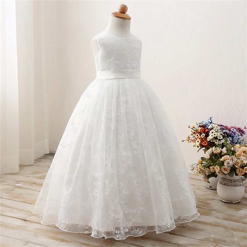 White frock for 6 year girl Clearance, Embroidery Flower Dress for Girls Clearance