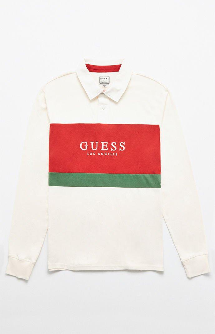 Guess rugby shirt Clearance, Guess Long Sleeve Rugby Shirt in Cream Clearance