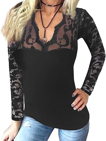 Women's lace sleeve top Clearance, V Neck Lace Sleeve Blouses Shirts Sexy Clearance