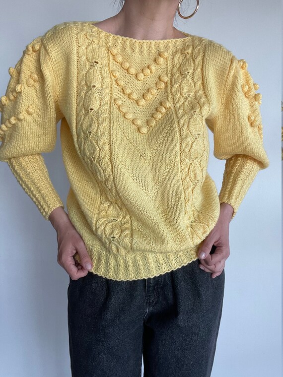 Yellow popcorn sweater Clearance, vintage popcorn wool - Gem Clearance