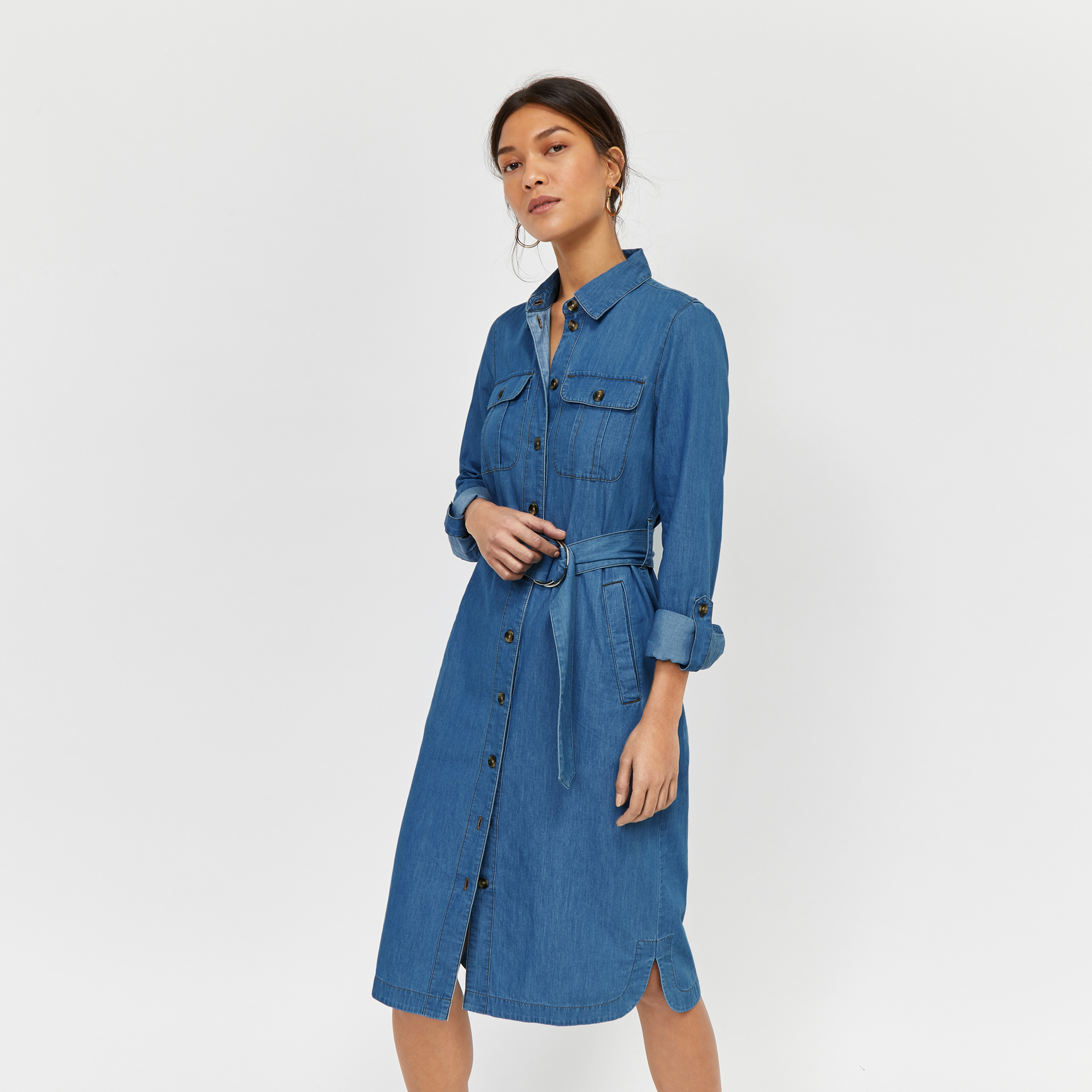 - Shopping Warehouse belted denim shirt dress