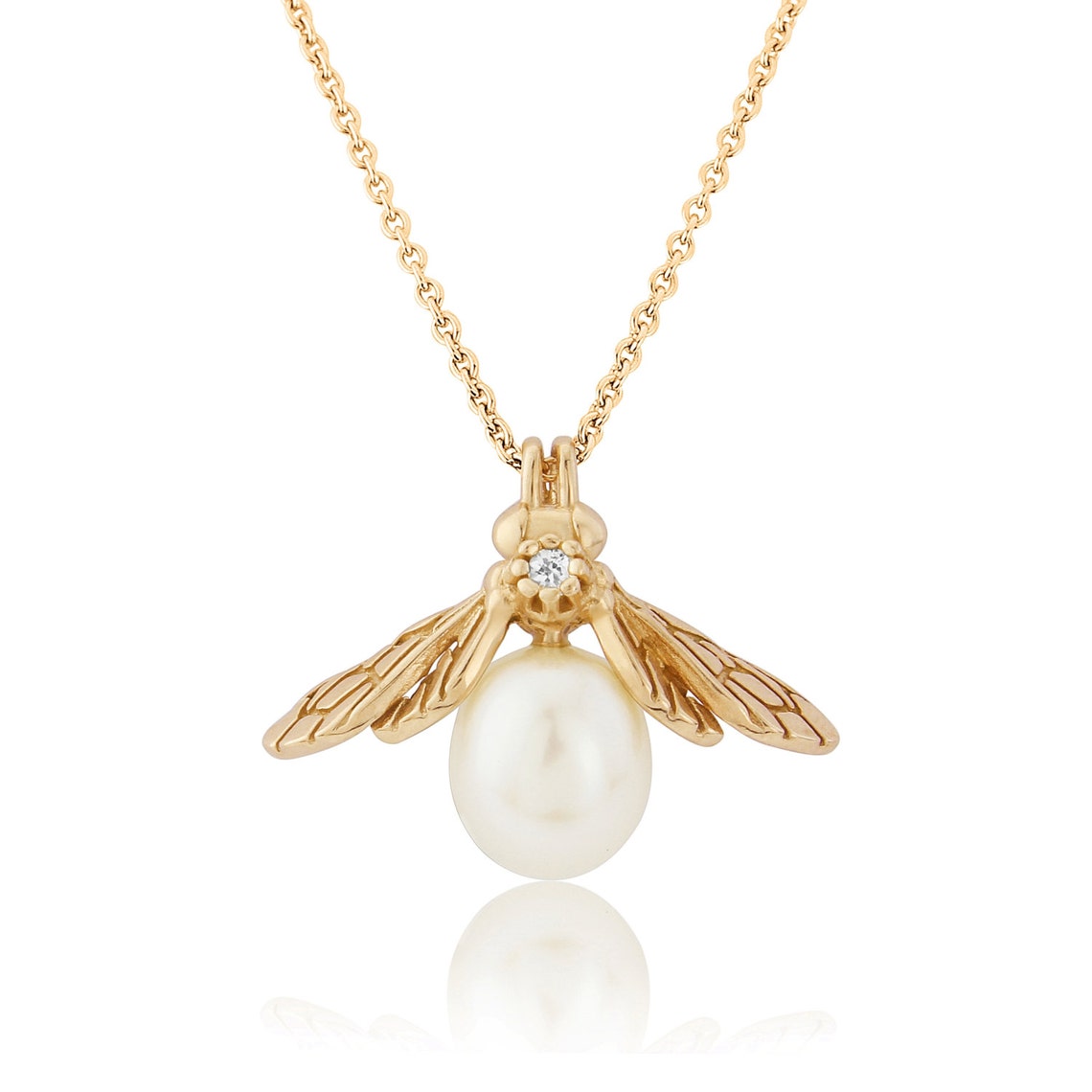 Pearl necklace with bee pendant Clearance, Yellow Gold Pearl Bee Pendant By Rachel Whitehead Jewellery Clearance