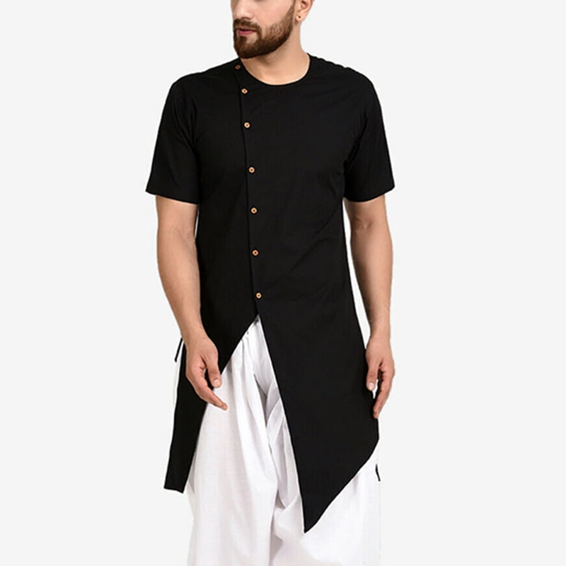 Kurta type t shirt Clearance, Incerun Mens Kurta Ethnic Shirts Short Sleeve Shirt T Shirt Top Festival Tee, Men's, Size: 3XL, Black Clearance