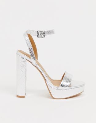 - Wide fit silver platform heels sale