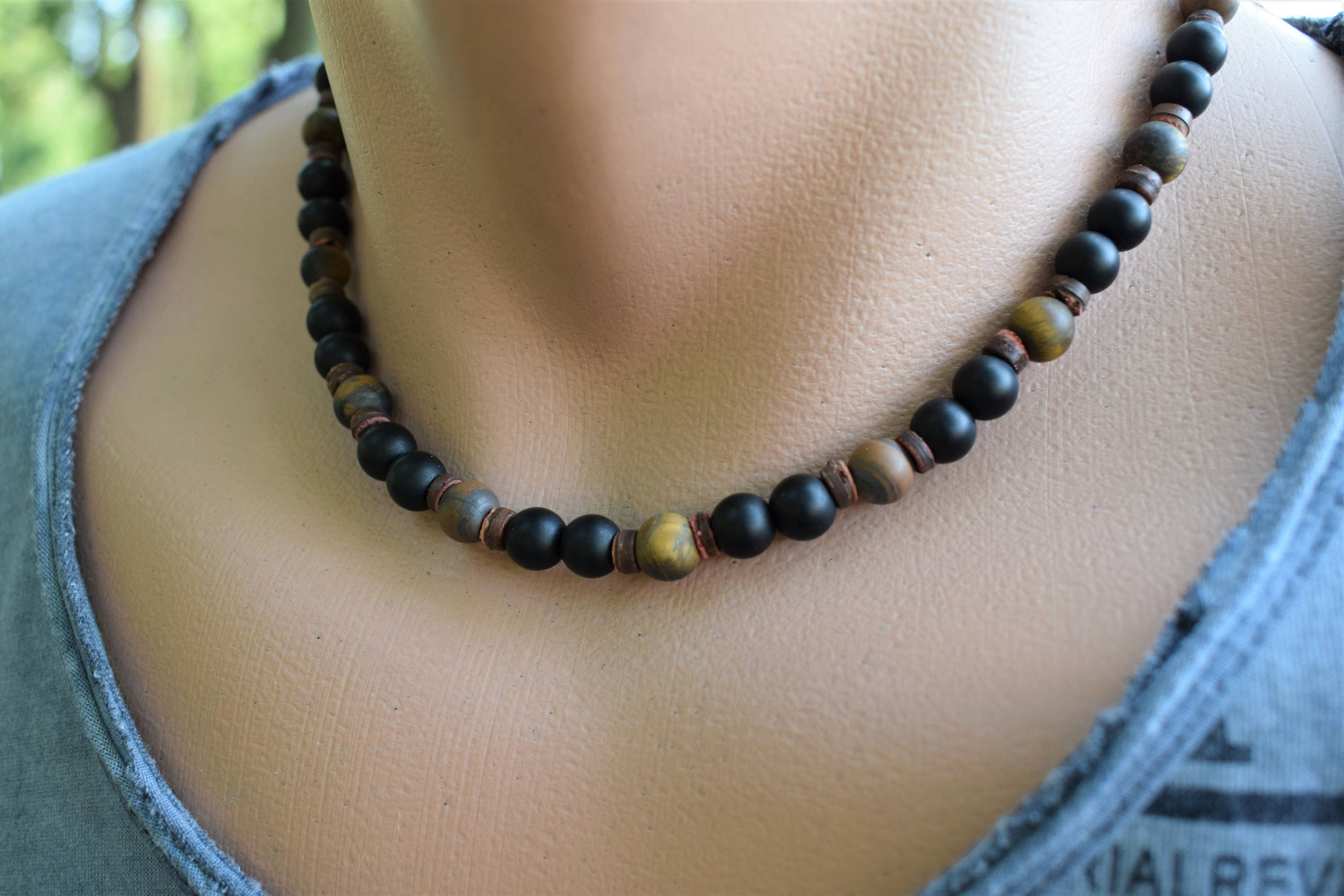 Protection beads necklace Clearance, protection beaded necklace mens stone necklace matte tigers | Etsy Clearance