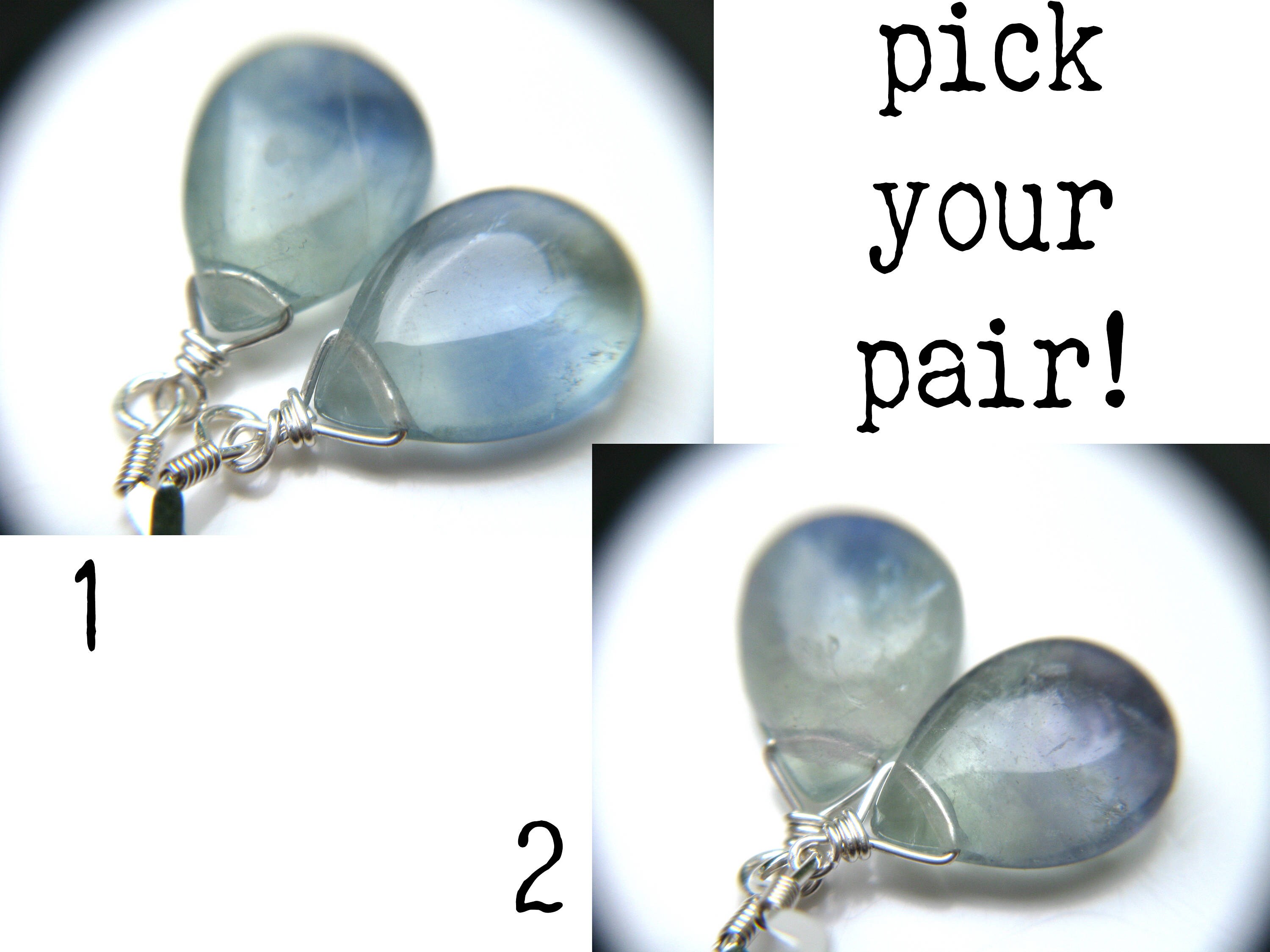 Fluorite earrings Clearance, Blue Fluorite Earrings . Blue Teardrop Earrings . Simple Drop Clearance