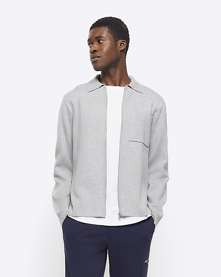 Grey zip up jumper Clearance, Grey regular fit zip up jumper | River Island Clearance