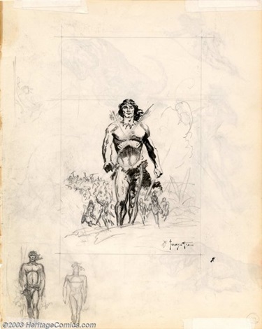 Frazetta pen and ink Clearance, Frank Frazetta - Original Sketches, Tarzan and Dinosaurs undated by Frank Frazetta on artnet Clearance