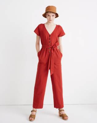 Linen cotton jumpsuit Clearance, Linen-Cotton Pleat-Sleeve Jumpsuit Clearance