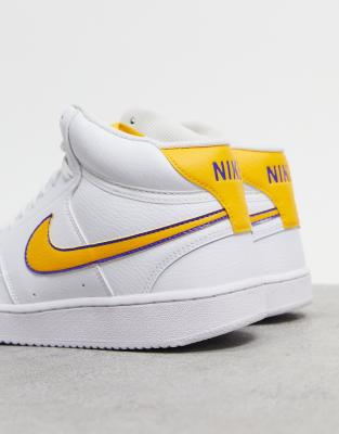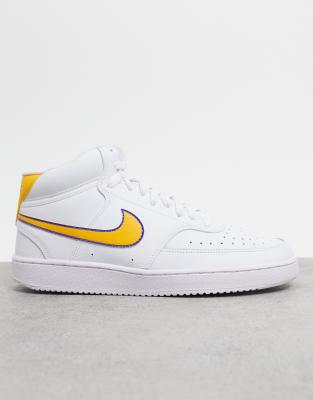- Nike court vision trainers in white with yellow swoosh clearance
