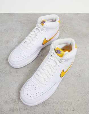 - Nike court vision trainers in white with yellow swoosh outlet
