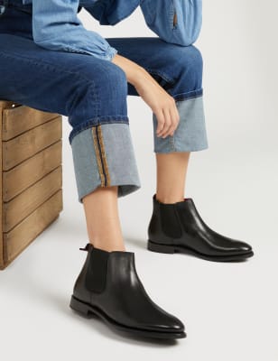 - Leather flat ankle boots sale