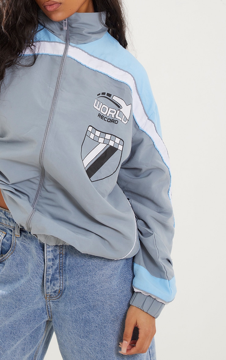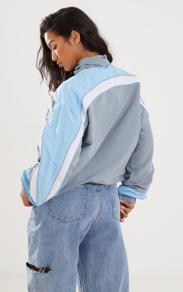 Plt grey racer jacket Clearance, Grey And Blue Contrast Stripe Shell Racer Jacket | PrettyLittleThing USA Clearance